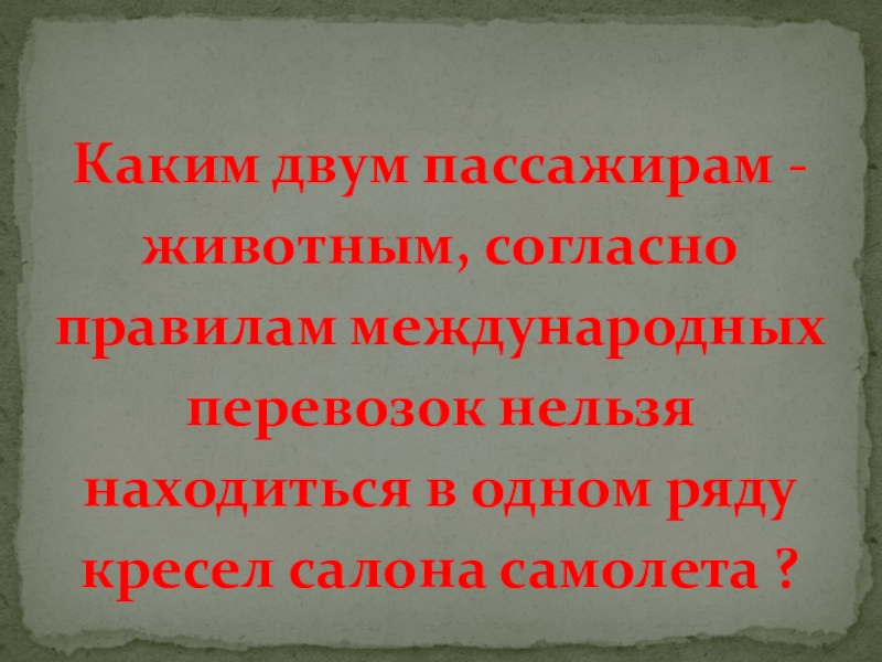 Слайд 53Каким двум пассажирам - животным, согласно правилам международных перевозок нельзя находиться