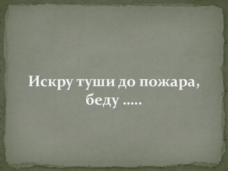 Слайд 4Искру туши до пожара, беду …..
