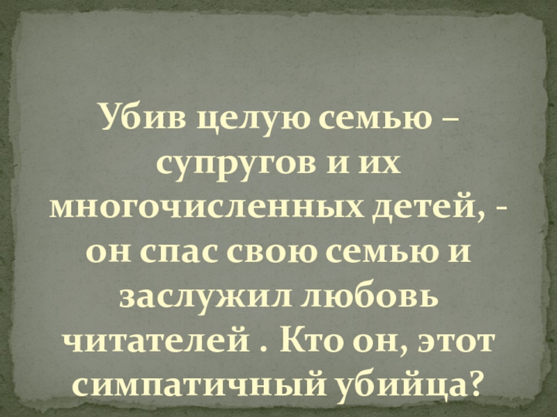 Слайд 13Убив целую семью – супругов и их многочисленных детей, - он