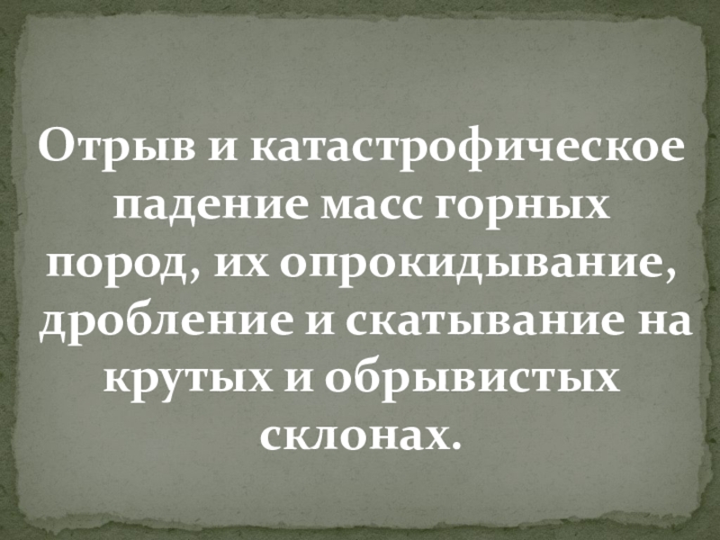 Слайд 28Отрыв и катастрофическое падение масс горных пород, их опрокидывание, дробление и