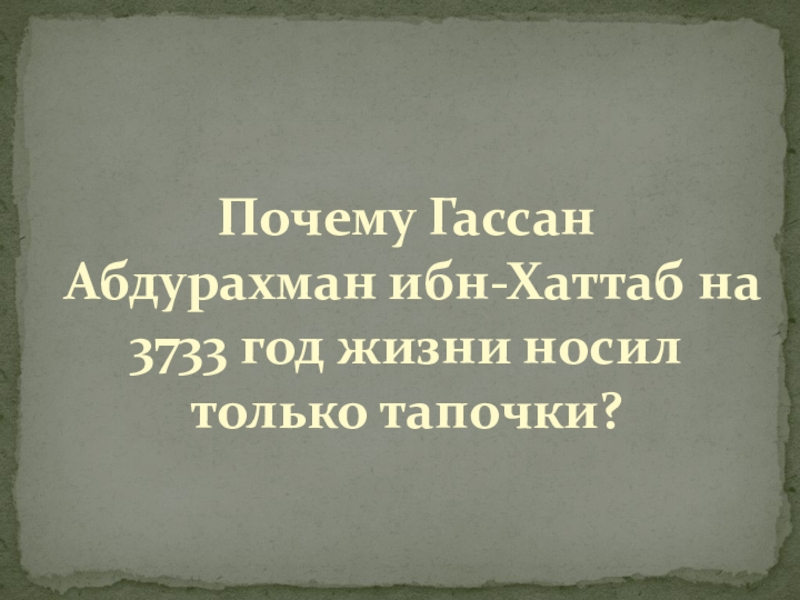 Слайд 11Почему Гассан Абдурахман ибн-Хаттаб на 3733 год жизни носил только тапочки?