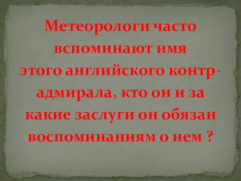 Слайд 34Метеорологи часто вспоминают имя этого английского контр- адмирала, кто он и за какие