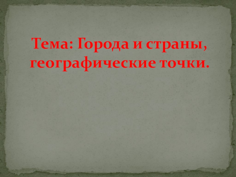 Слайд 39Тема: Города и страны, географические точки.