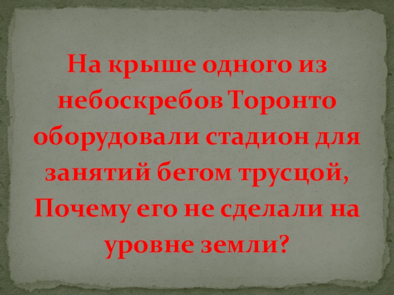 Слайд 56На крыше одного из небоскребов Торонто оборудовали стадион для занятий бегом