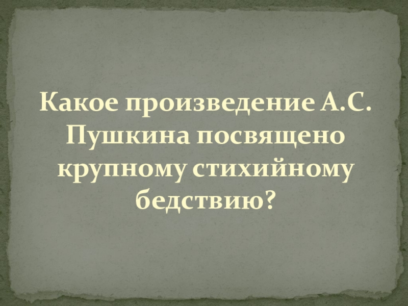 Слайд 25Какое произведение А.С. Пушкина посвящено крупному стихийному бедствию?