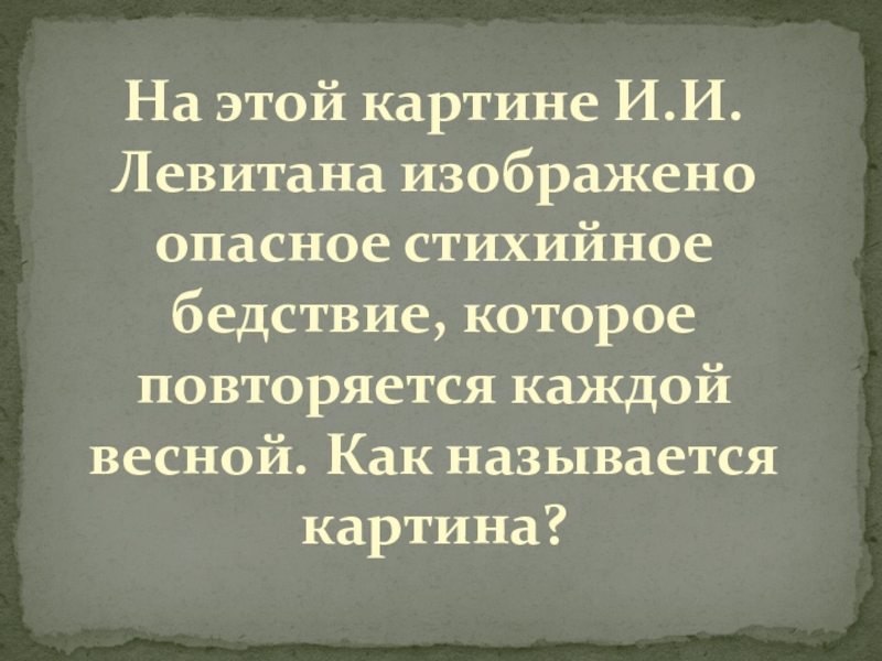 Слайд 22На этой картине И.И. Левитана изображено опасное стихийное бедствие, которое повторяется