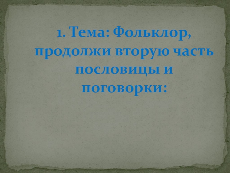 Слайд 21. Тема: Фольклор, продолжи вторую часть пословицы и поговорки: