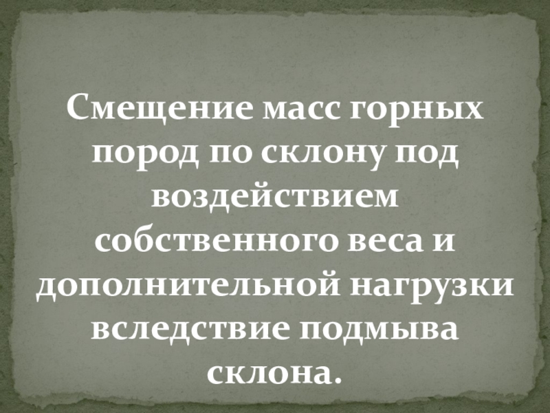 Слайд 27Смещение масс горных пород по склону под воздействием собственного веса и