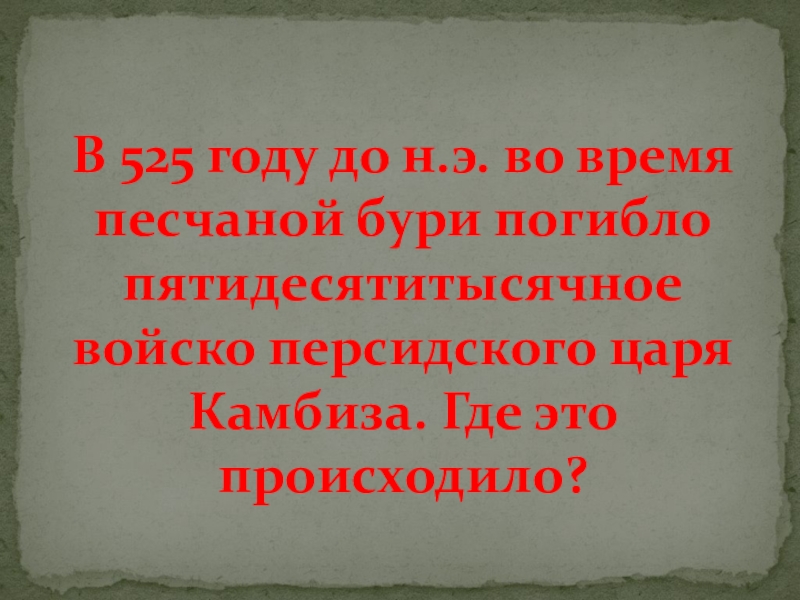 Слайд 44В 525 году до н.э. во время песчаной бури погибло пятидесятитысячное