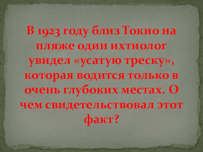 Слайд 50В 1923 году близ Токио на пляже один ихтиолог увидел «усатую