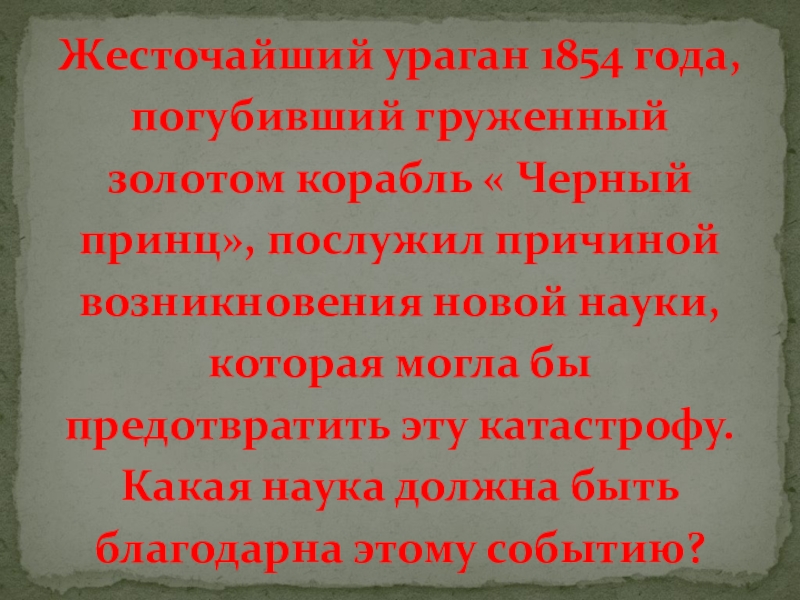 Слайд 55Жесточайший ураган 1854 года, погубивший груженный золотом корабль « Черный принц»,