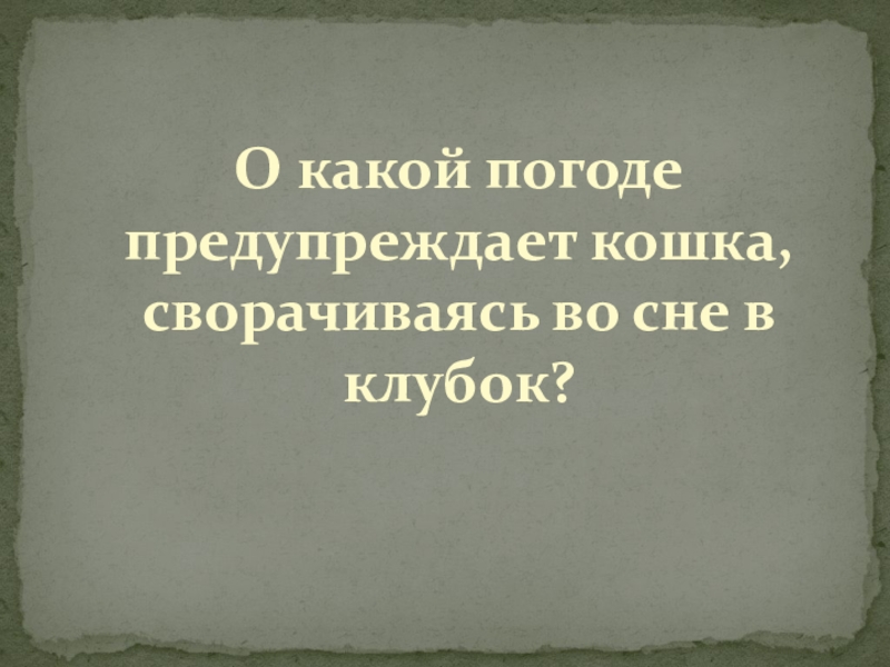 Слайд 15О какой погоде предупреждает кошка, сворачиваясь во сне в клубок?