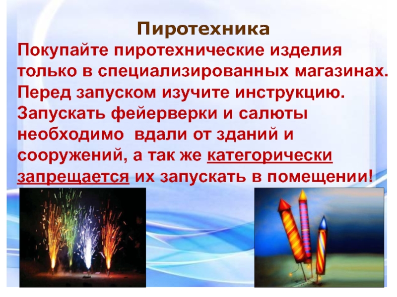 Покупайте пиротехнические изделия только в специализированных магазинах.