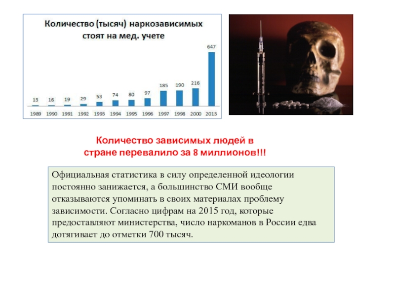 Слайд 11Количество зависимых людей в стране перевалило за 8 миллионов!!!