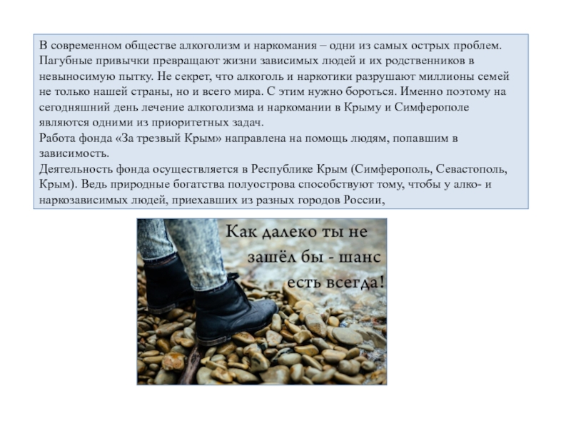Работа фонда «За трезвый Крым» направлена на помощь людям, попавшим в зависимость.