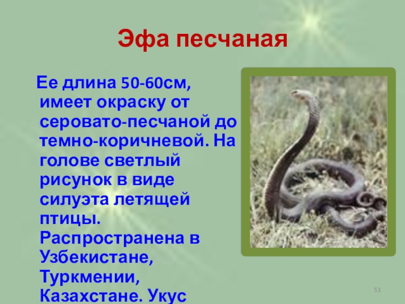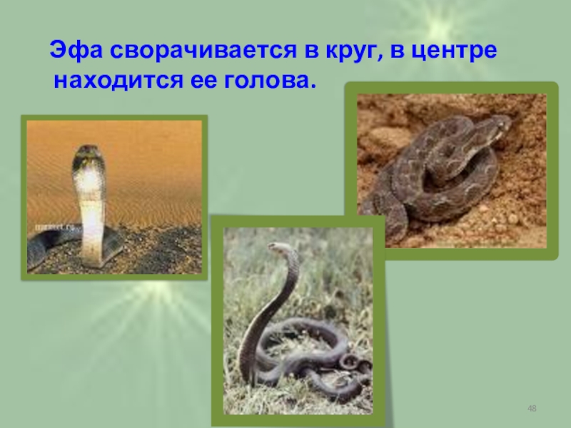 Слайд 48 Эфа сворачивается в круг, в центре находится ее голова.