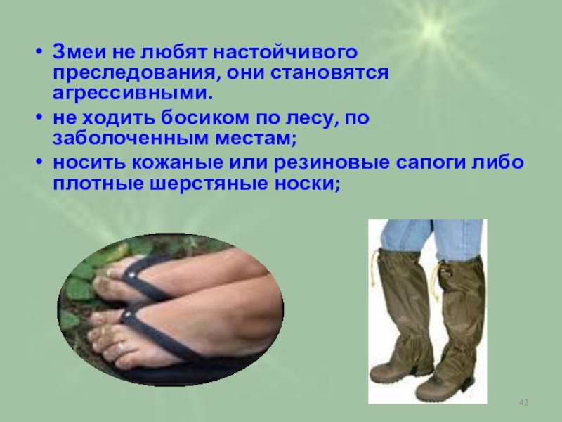 Слайд 41 Будьте внимательны и осторожны! Змеи любят греться на солнце