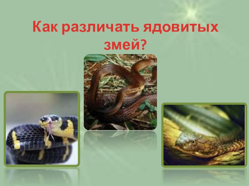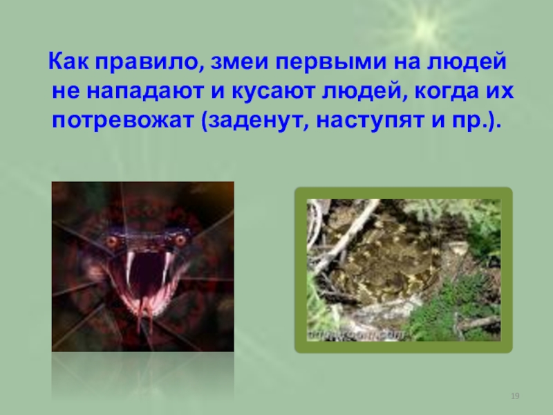 Слайд 19 Как правило, змеи первыми на людей не нападают и
