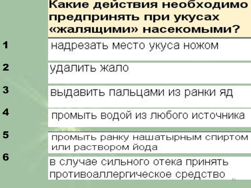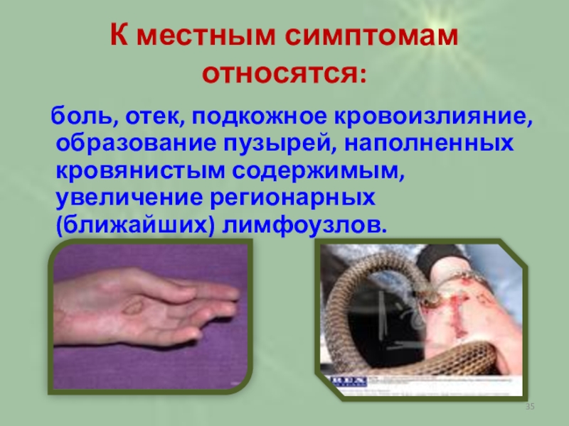 Слайд 13Признаки и первая медицинская при укусах членистоногих.