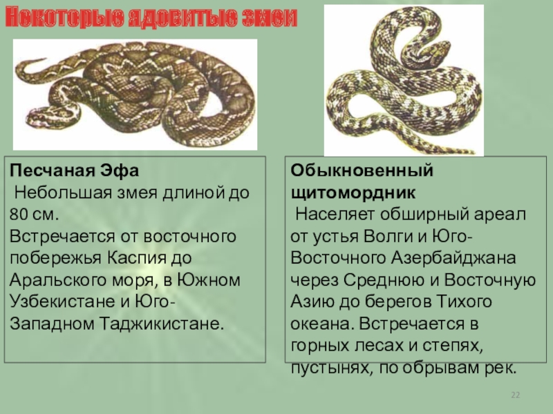 млн человек. Из них умирает около 40 тыс. В России ядовитые змеи встречаются в Закавказье, в Средней Азии, на Дальнем Востоке, в Сибири. Отравление змеиным ядом всегда бывает опасно для жизни. Поэтому очень важно уметь оказывать пострадавшему скорую помощь, т. к. от быстроты оказания помощи очень часто зависит жизнь человека.