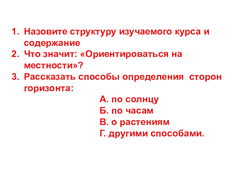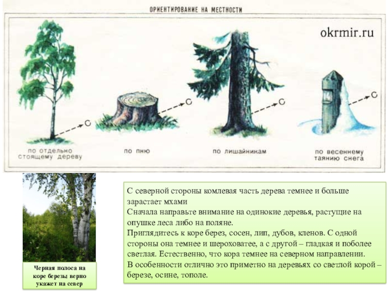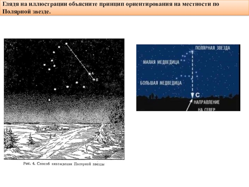 Для отыскания направления по сторонам света вначале определяют направление север-юг; после чего, став лицом к северу, определяющий будет иметь направо - восток, налево - запад.