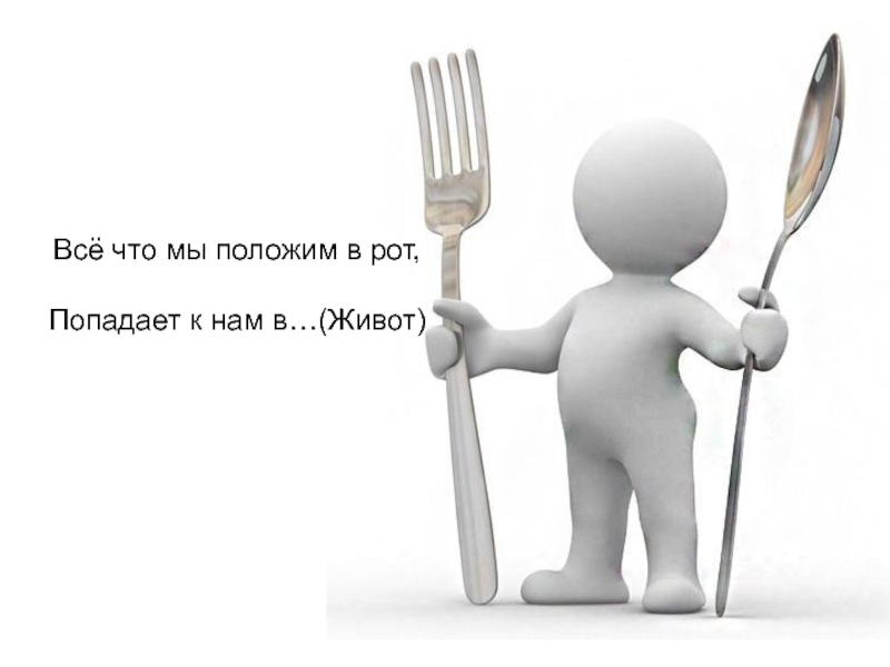 Всё что мы положим в рот,Попадает к нам в…(Живот)