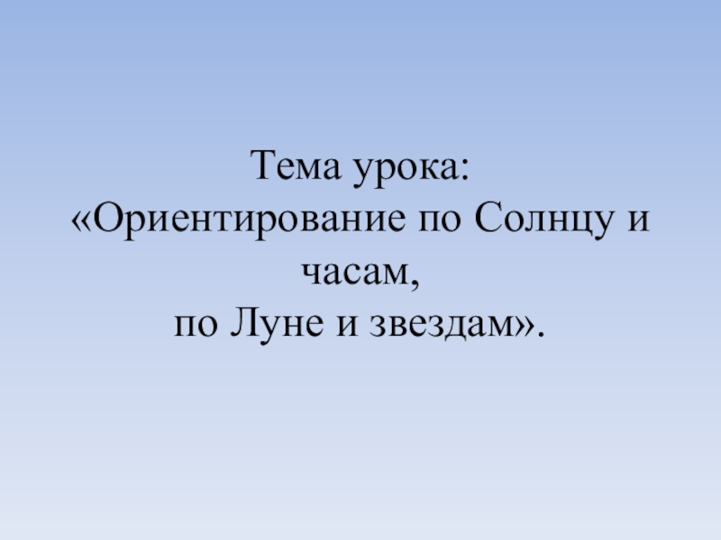 Слайд 1Тема урока: «Ориентирование по Солнцу и часам, по Луне и звездам».