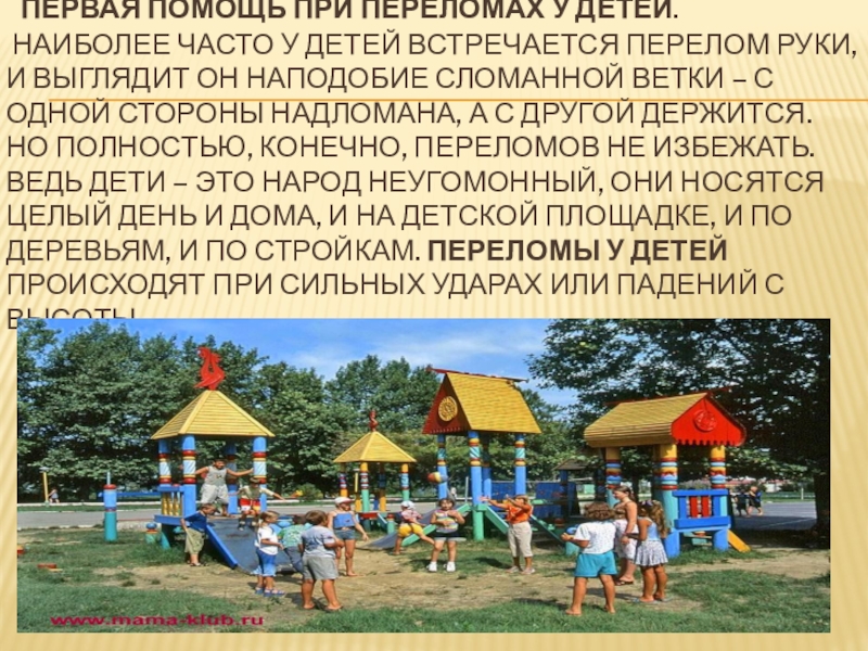 встречается перелом руки, и выглядит он наподобие сломанной ветки – с одной стороны надломана, а с другой держится. Но полностью, конечно, переломов не избежать. Ведь дети – это народ неугомонный, они носятся целый день и дома, и на детской площадке, и по деревьям, и по стройкам. Переломы у детей происходят при сильных ударах или падений с высоты.