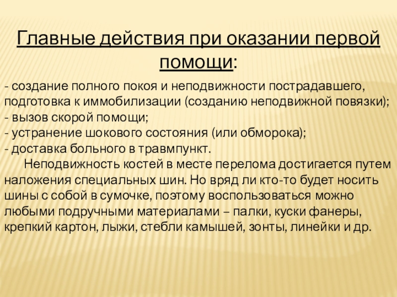 Слайд 4Общие принципы оказания первой медицинской помощи при переломах.