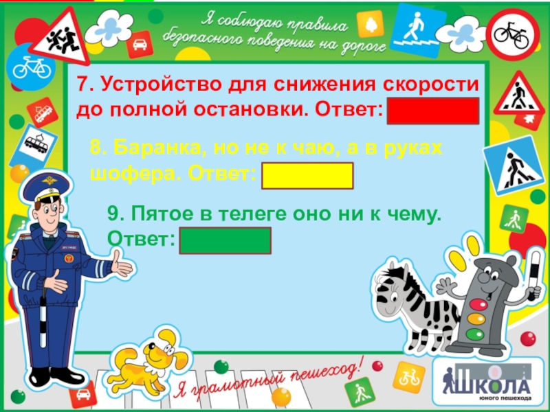9. Пятое в телеге оно ни к чему. Ответ: Колесо.
