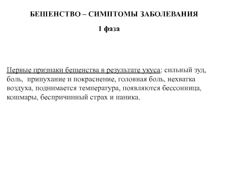 БЕШЕНСТВО – СИМПТОМЫ ЗАБОЛЕВАНИЯ