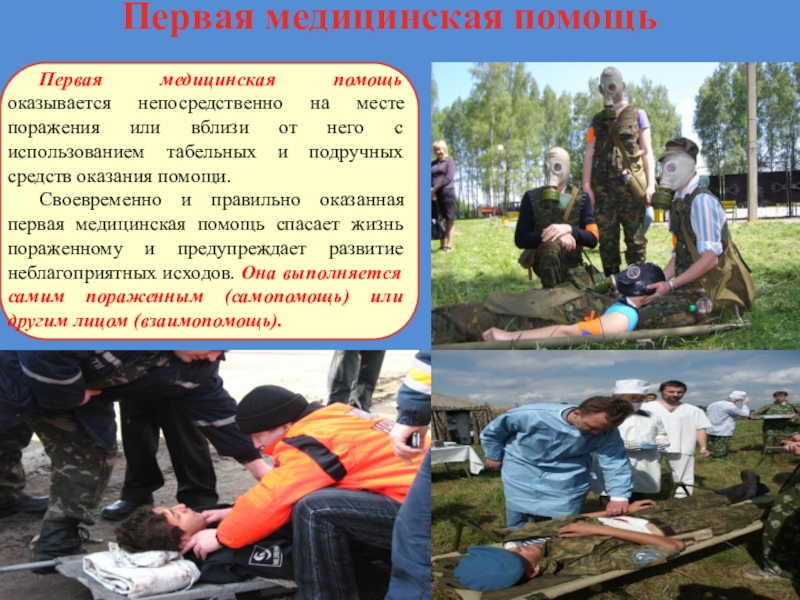 Она становится первым этапом медицинской эвакуации на пути выноса и вывоза пораженных за пределы очага массовых потерь, обеспечивающим первую врачебную помощь с выполнением хирургических вмешательств по неотложным жизненным показателям (окончательная остановка сердца и др.)