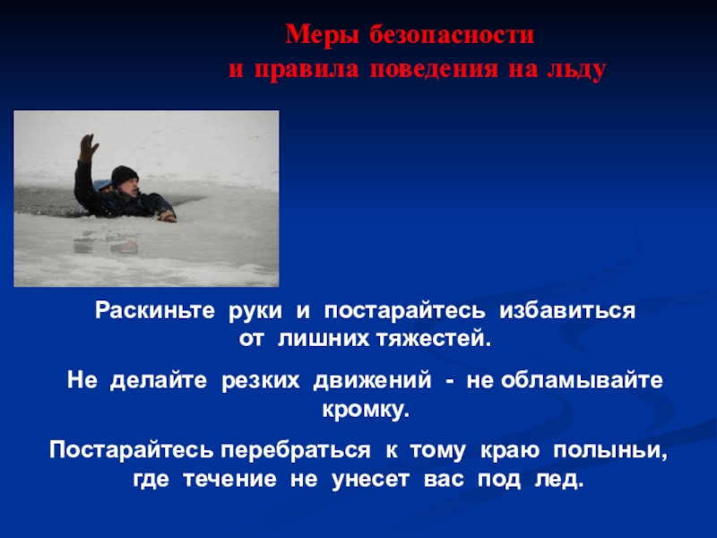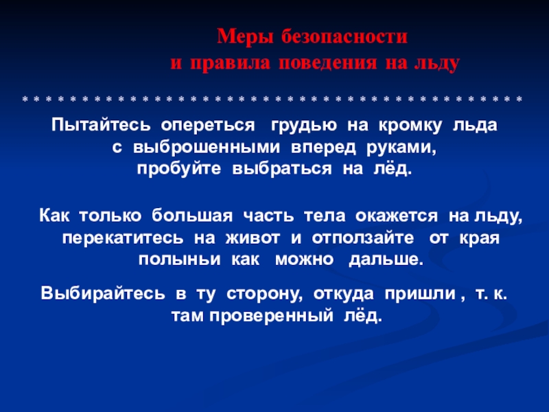 перекатитесь на живот и отползайте от края полыньи как можно дальше.