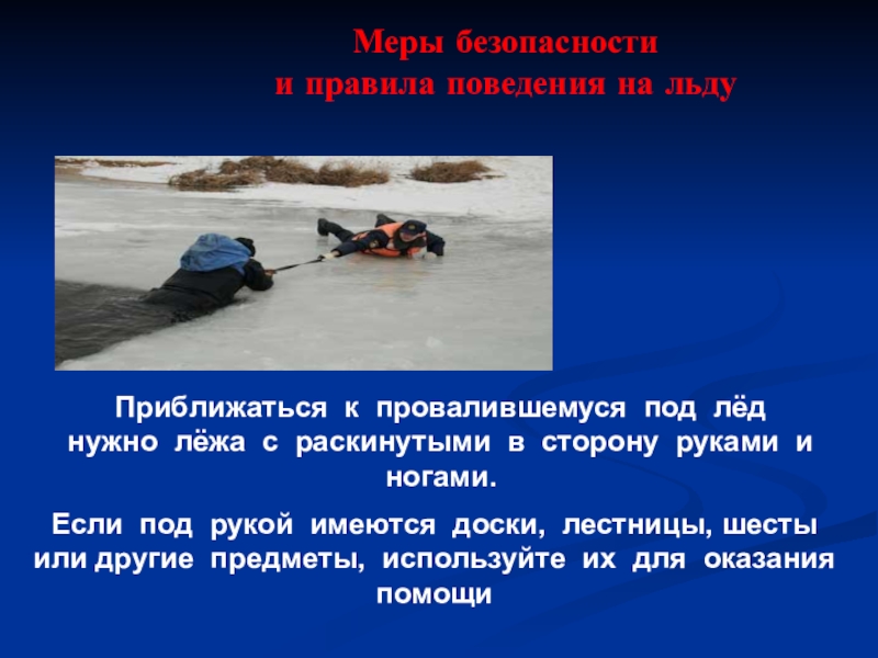 Если под рукой имеются доски, лестницы, шесты или другие предметы, используйте их для оказания помощи