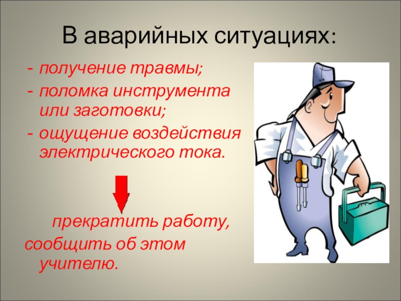Слайд 17Меры безопасности при работе в школьных мастерских: