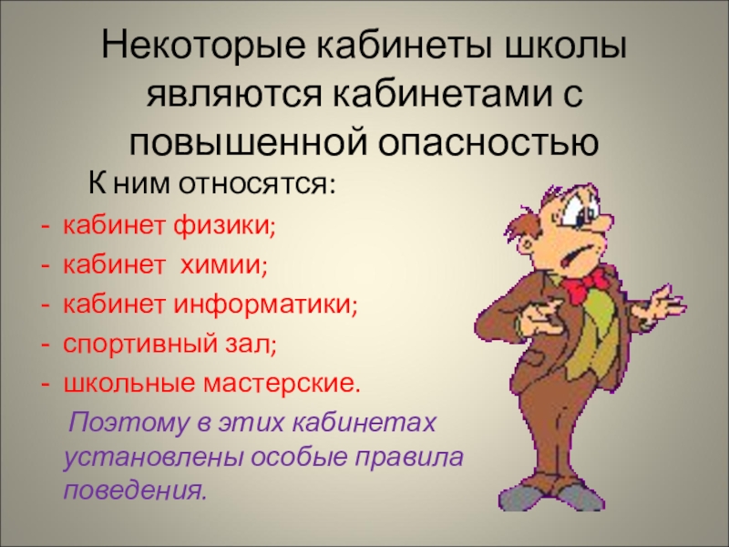 Некоторые кабинеты школы являются кабинетами с повышенной опасностью