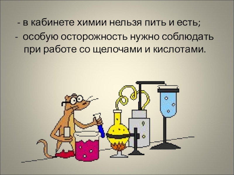 при нагревании жидкости отверстие пробирки должно быть направлено в сторону от лица работающего;