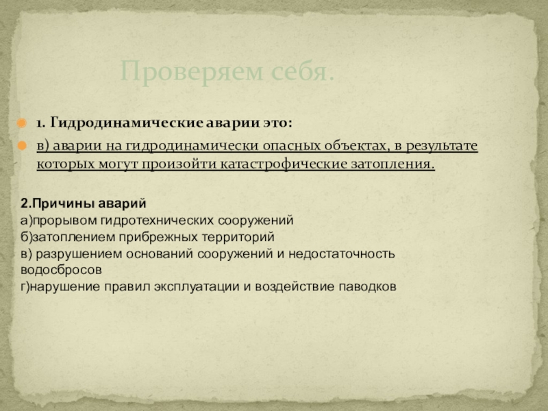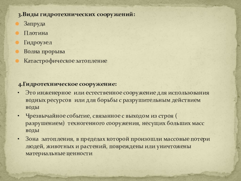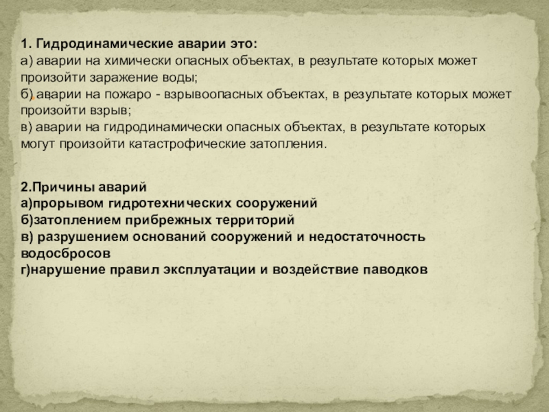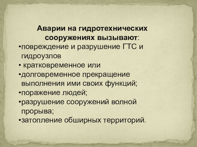 в) разрушением оснований сооружений и недостаточность водосбросов