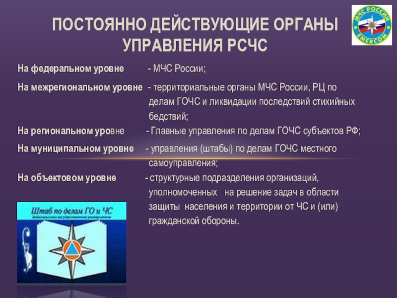 ПОСТОЯННО ДЕЙСТВУЮЩИЕ ОРГАНЫ УПРАВЛЕНИЯ РСЧС