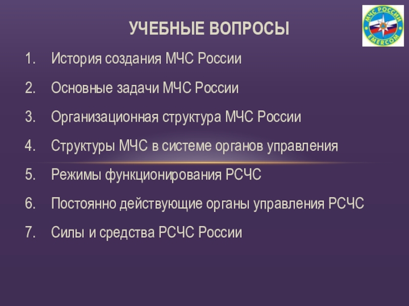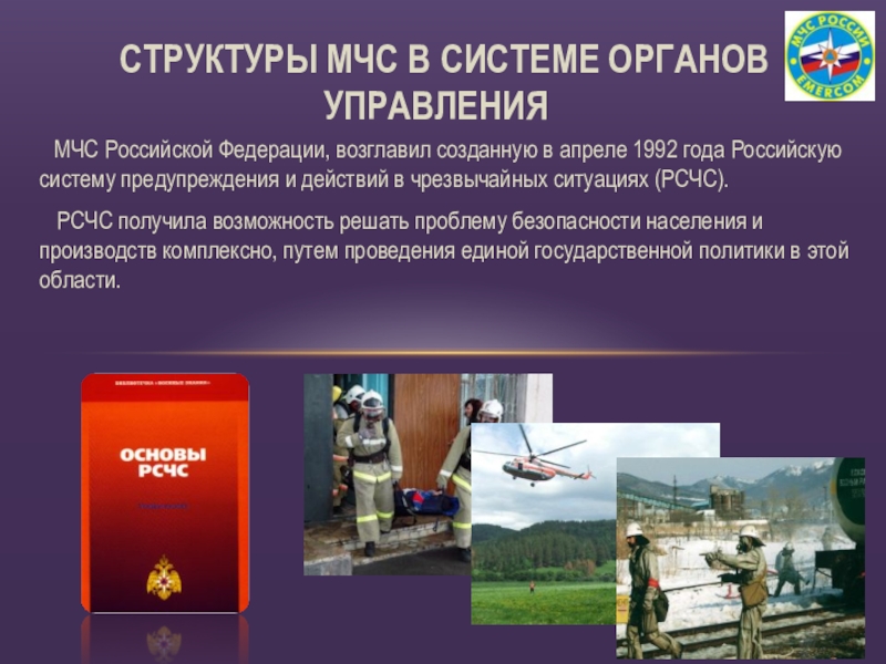 СТРУКТУРЫ МЧС В СИСТЕМЕ ОРГАНОВ УПРАВЛЕНИЯ
