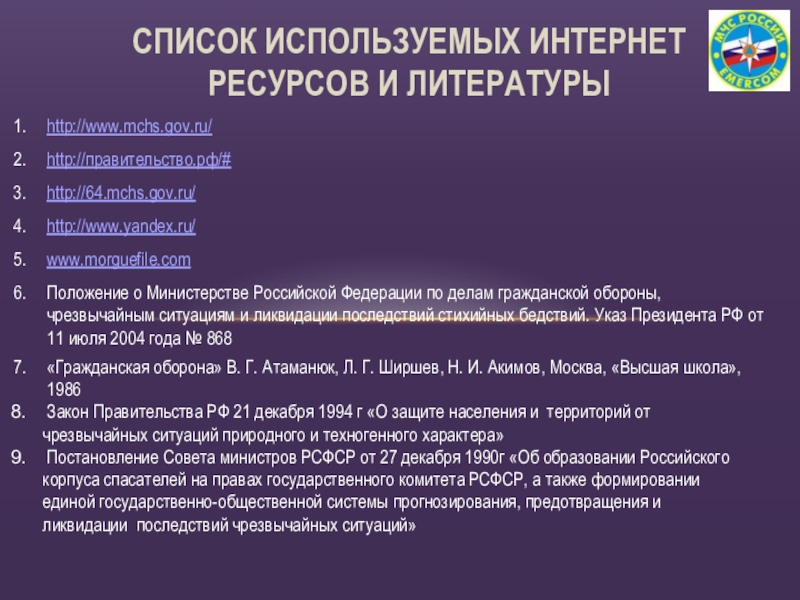 СПИСОК ИСПОЛЬЗУЕМЫХ ИНТЕРНЕТ РЕСУРСОВ И ЛИТЕРАТУРЫ