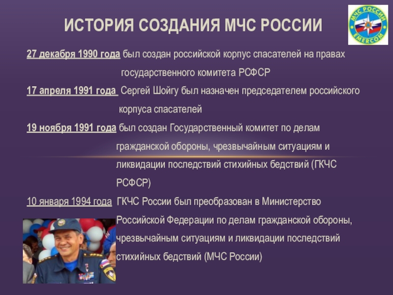 ИСТОРИЯ СОЗДАНИЯ МЧС РОССИИ