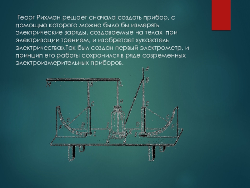 Слайд 6 Георг Рихман решает сначала создать прибор, с помощью которого можно