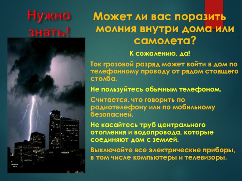 Слайд 19Может ли вас поразить молния внутри дома или самолета?