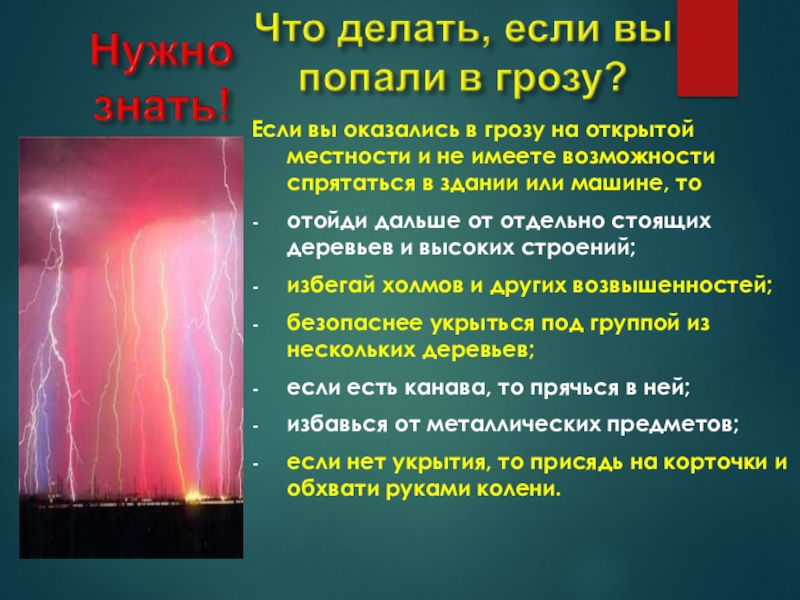 Слайд 21Если вы оказались в грозу на открытой местности и не имеете