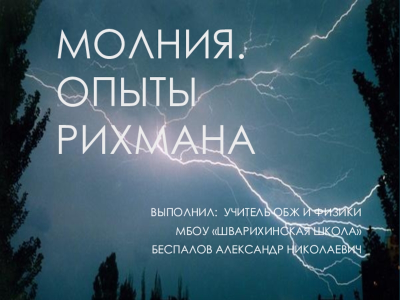 Слайд 1МОЛНИЯ. ОПЫТЫ РИХМАНА