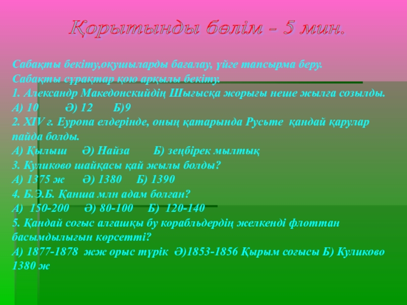 Қорытынды бөлім - 5 мин.