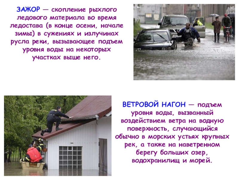 ЗАЖОР — скопление рыхлого ледового материала во время ледостава (в конце осени, начале зимы) в сужениях и излучинах русла реки, вызывающее подъем уровня воды на некоторых участках выше него.