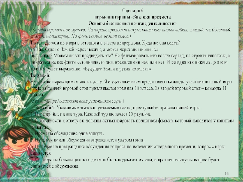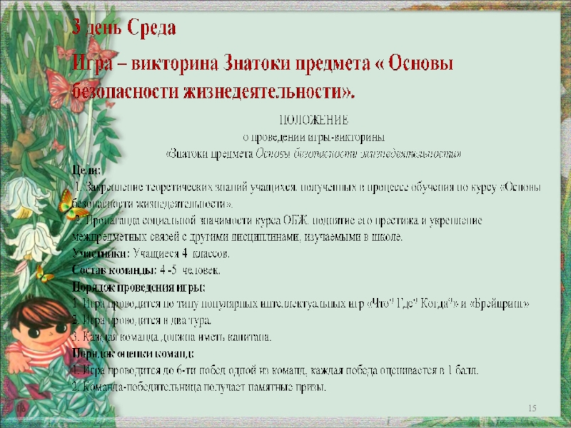 2. Игра-викторина “Знатоки предмета “Основы безопасности жизнедеятельности”.