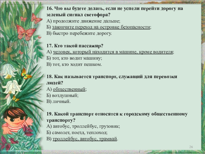 Слайд 2616. Что вы будете делать, если не успели перейти дорогу на